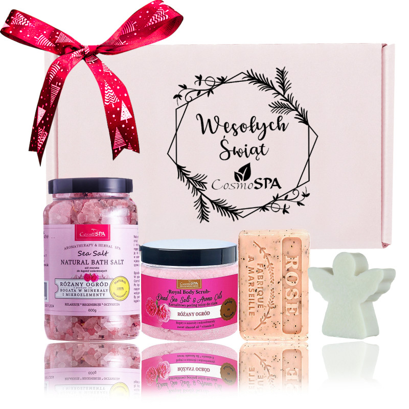 EKO ZESTAW RÓŻANY : SÓL DO KĄPIELI, KARNALITOWY PEELING, MYDEŁKO.